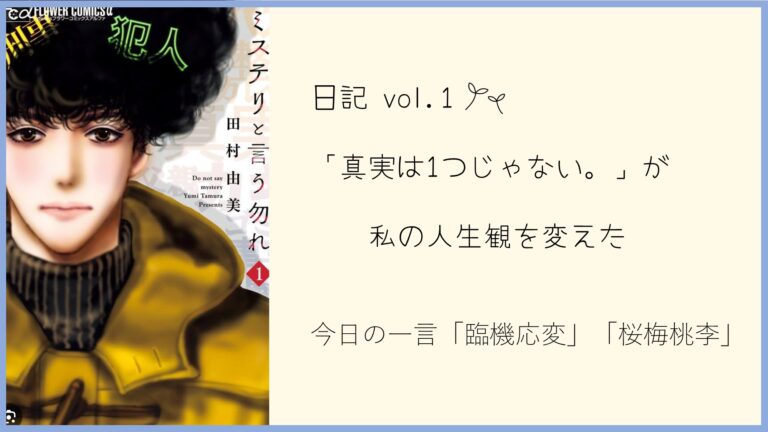 でもひとまず今は、そこに気づけた自分を自分で褒めてあげなくちゃ。大切なのは、自分を一番愛してあげる事。自分勝手になったり意固地になるのではなく、自分の欠点から目を背けず理想の自分に近づいていく事が大切。平和主義の私としては何としてでも自分の欠点を克服したい!ちなみに娘は、「ミステリと言う勿れ」の漫画を読んでみるといいよ。と言っていたので、今度1から読んでみようと思っています。